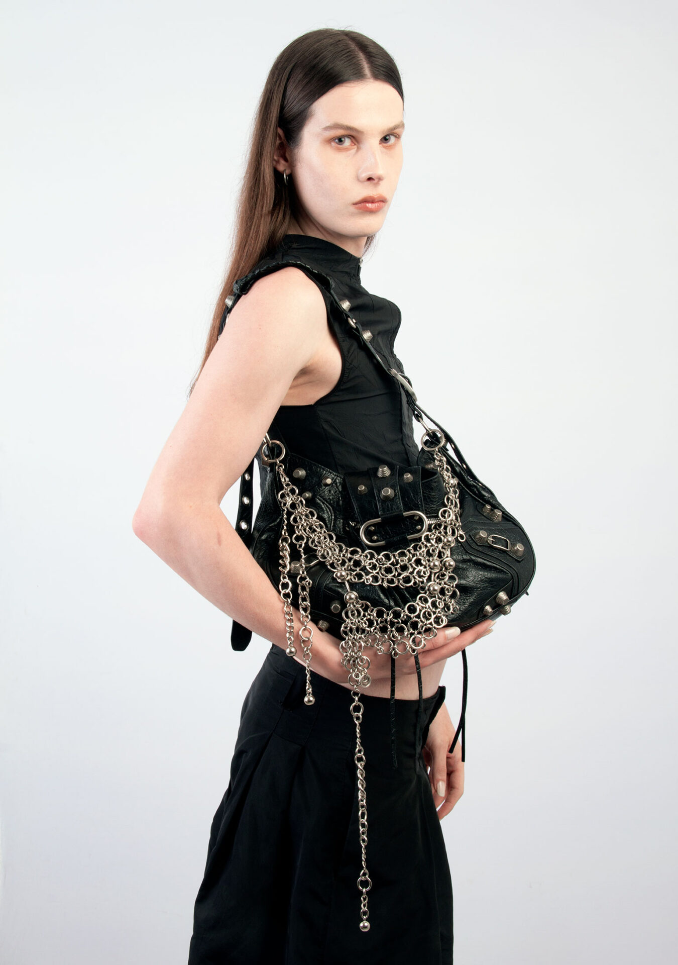 Esta peça possui uma extensão de corrente (76cm) e uma extensão de chaveiro e pode ser usada de diversas formas: