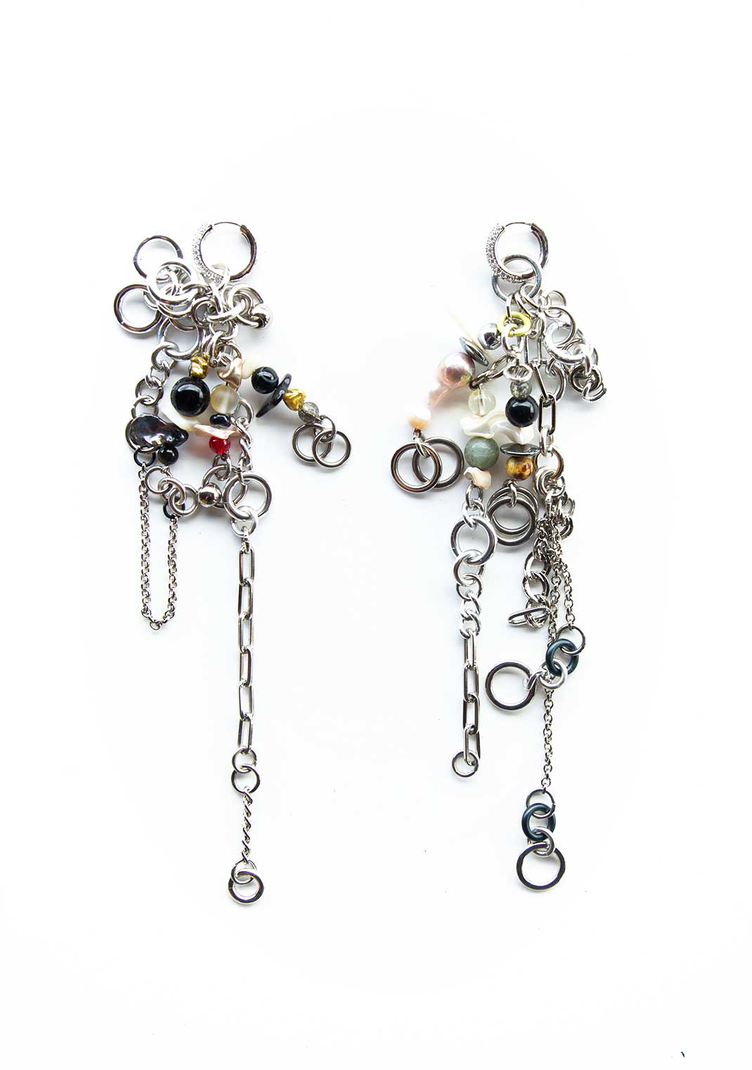 Material: Aço niquelado envernizado, alumínio, vidro, madrepérola e diferentes tipos de pedras naturais como hematita, obsidiana, ágata, coral e jaspe imperial.