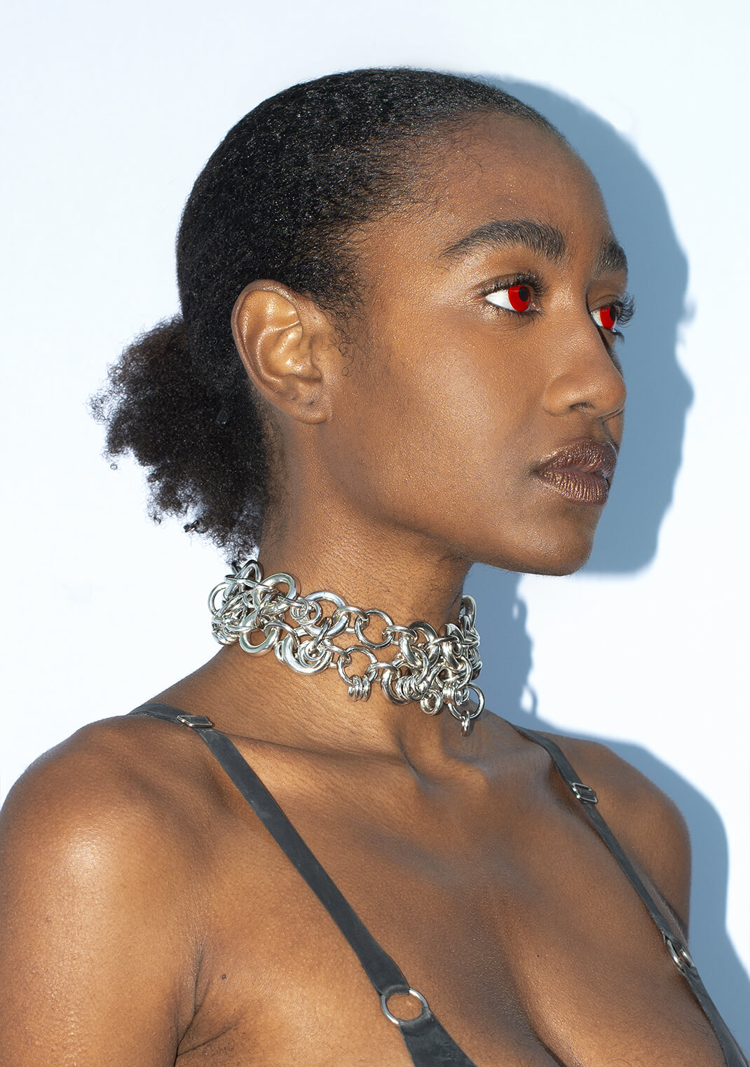 Esta peça pode ser usada tanto como choker quanto como colar normal.