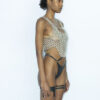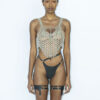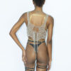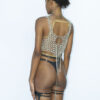 Esta peça possui tamanho único com elástico para que se regule a circunferência do busto, vestindo tanto um P quanto um M usual.