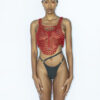 Esta peça possui tamanho único com elástico para que se regule a circunferência do busto, vestindo tanto um P quanto um M usual.