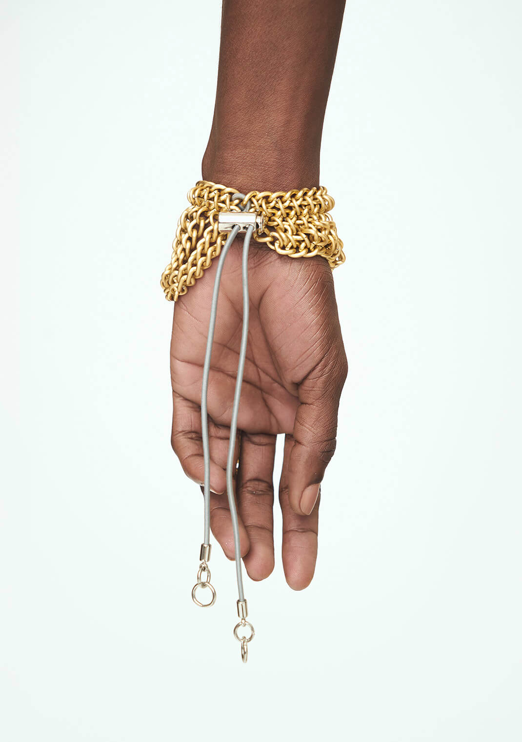 Material: Alumínio, aço niquelado envernizado e elástico (poliéster).