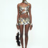 Top com franjas em discos de alumínio multicolorido brilhante e fosco.